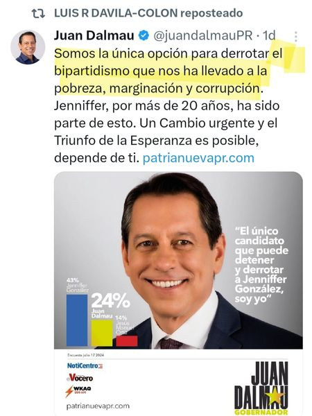 Este personaje Juan Dalmau sabe muy bien que el comunismo y el socialismo son ideologías que han llevado a la pobreza extrema a todos los países que lo han abrazado en este hemisferio Cuba, Venezuela y Nicaragua. Todos estos países son gobernados por dictadores admirados por Dalmau. Particularmente uno de ellos, Nicolas Maduro con quien ha colaborado en infinidad de ocasiones como lo demuestran las fotos que se han circulado en las redes. Pero aun así en este momento